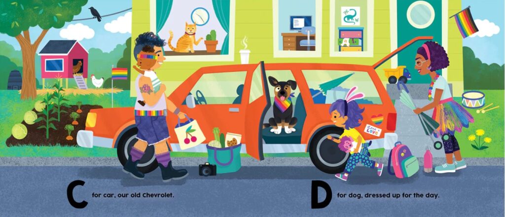 Teaching suggestion: Compare this book with another text featuring families and/or the colors of the Rainbow flag, such as Rainbow: A First Book of Pride by Michael Genhart. Discuss what the children see in these two different depictions of Pride.